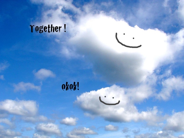 一起在藍藍白白的天空下玩